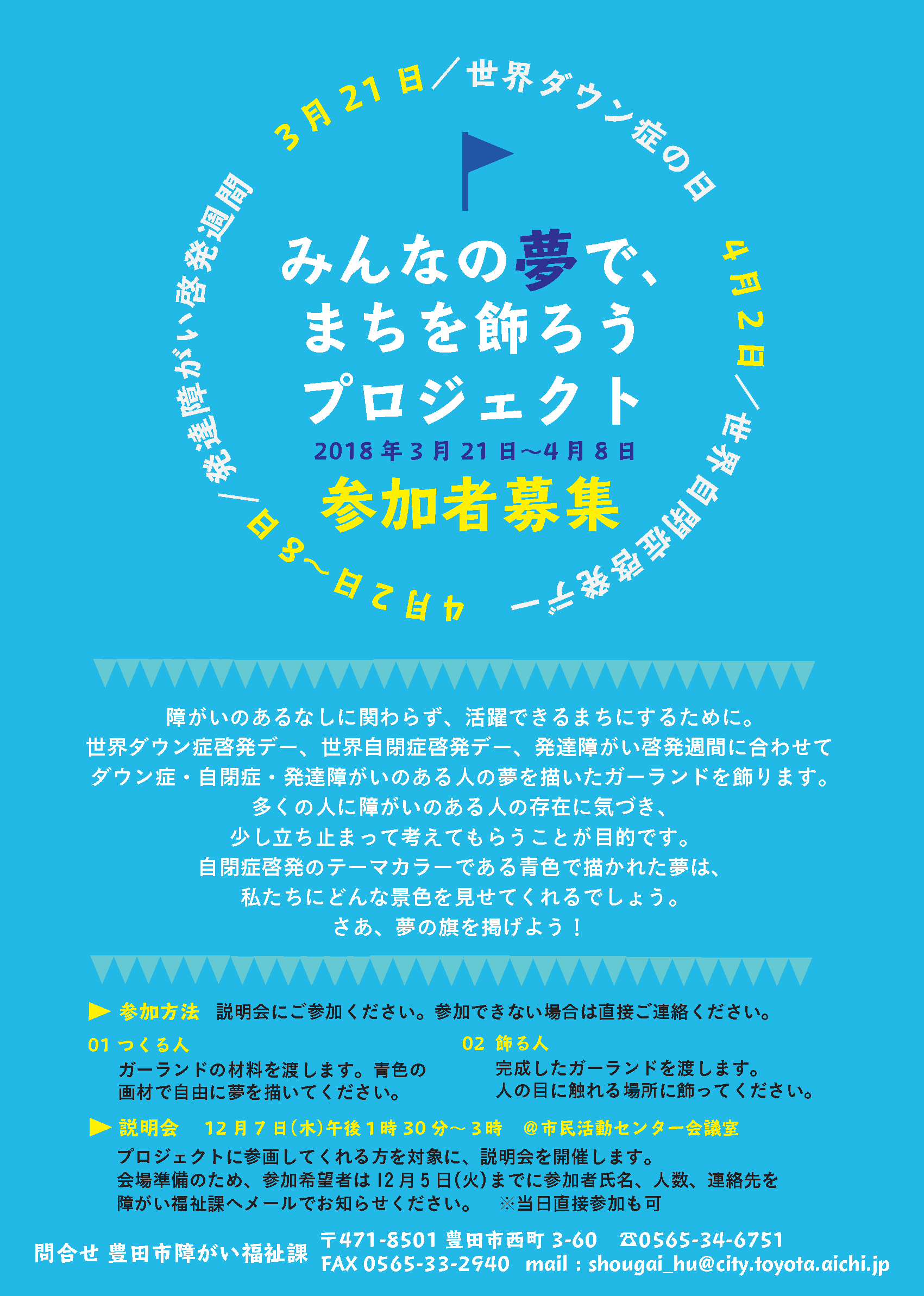 チラシにもある通り、ガーランドを作製して まちなかを飾り付ける企画です。